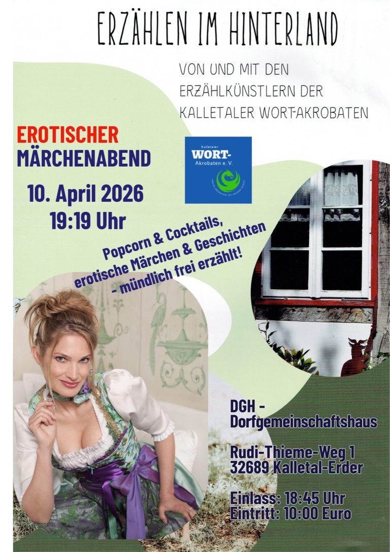 Ach ja? An diesem Abend sollten Sie ihre Kinder lieber bei Oma und Opa zu hause lassen. Dieser Abend wird voller erotischer Erzähllust und purem Hörgenuss stecken, und wir werden unser Publikum einmal mehr davon überzeugen, dass Märchen sehr wohl etwas für Erwachsene sind. Denn es gibt sie, die Märchen Ü-18!
