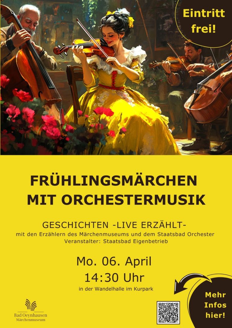 Nach bereits mehreren gelungenen Erzählkonzerten geben sich der Erzählkreis am Märchenmuseum Bad Oeynhausen und das Staatsbadorchester der Stadt Oeynhausen unter der Leitung von Denise Gruber wieder die Ehre miteinander märchenhaft Schönes und musikalisch Bezauberndes zu wirken.